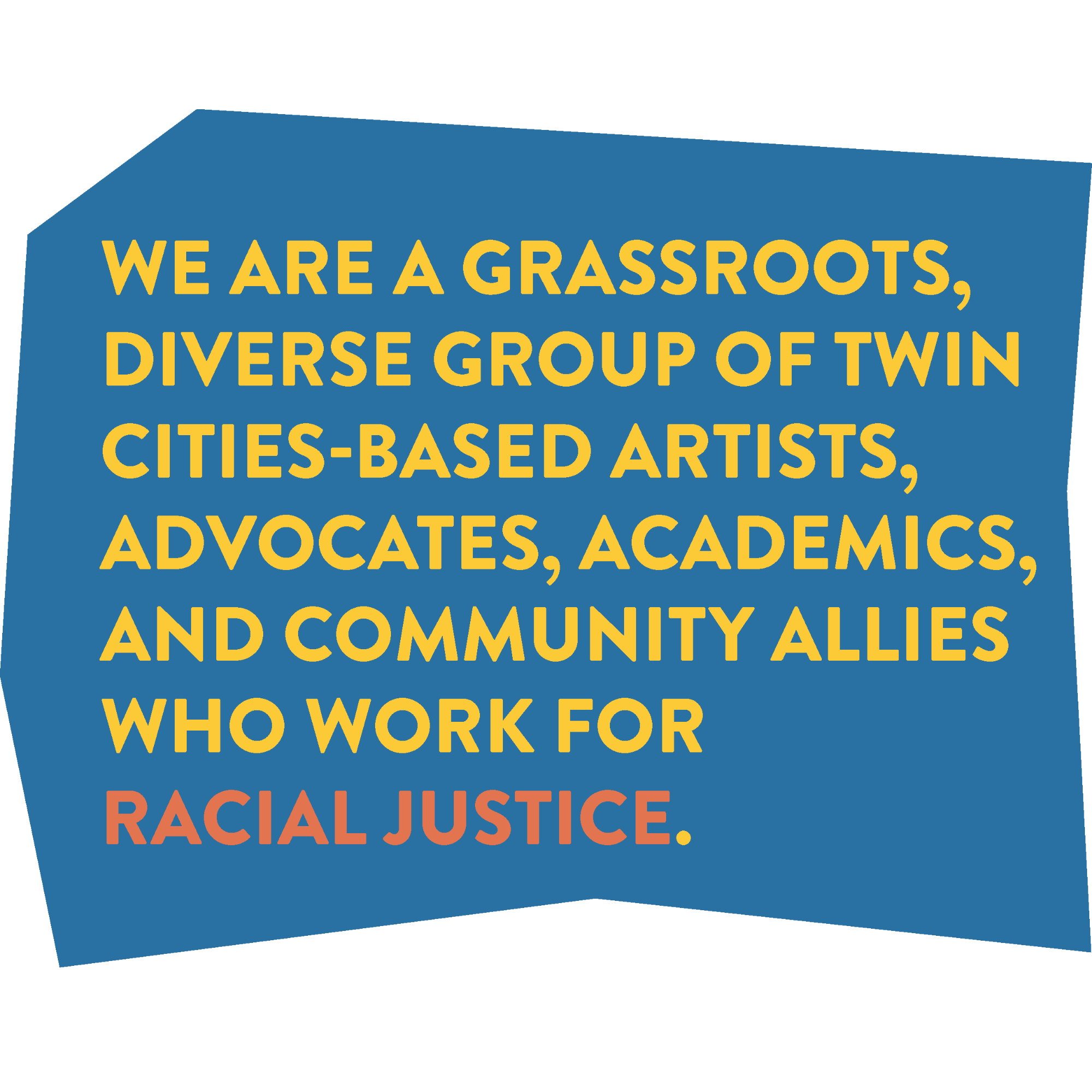 TO ACKNOWLEDGE OUR NATION’S HISTORY OF RACISM, RECOGNIZE ITS ONGOING IMPACT ON THE TWIN CITIES AND COMMUNITIES ACROSS THE COUNTRY, AND WORK FOR CHANGE THROUGH EDUCATION, COMMUNITY ENGAGEMENT, AND STORYTELLING.